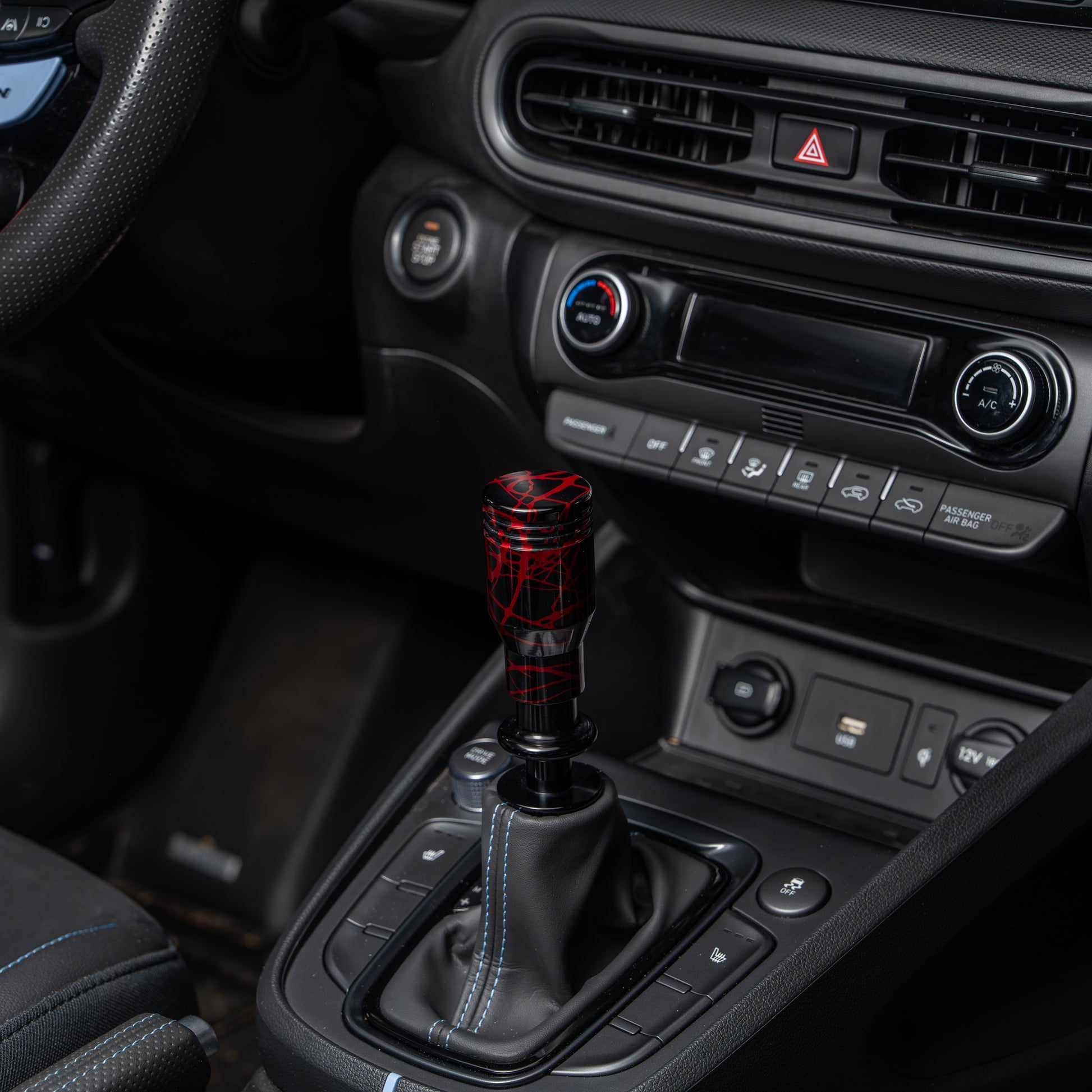 Billetworkz Automatic Shifter - Black w/ Red Splash - Fits Hyundai Veloster N / Elantra N / Kona N (2019+)