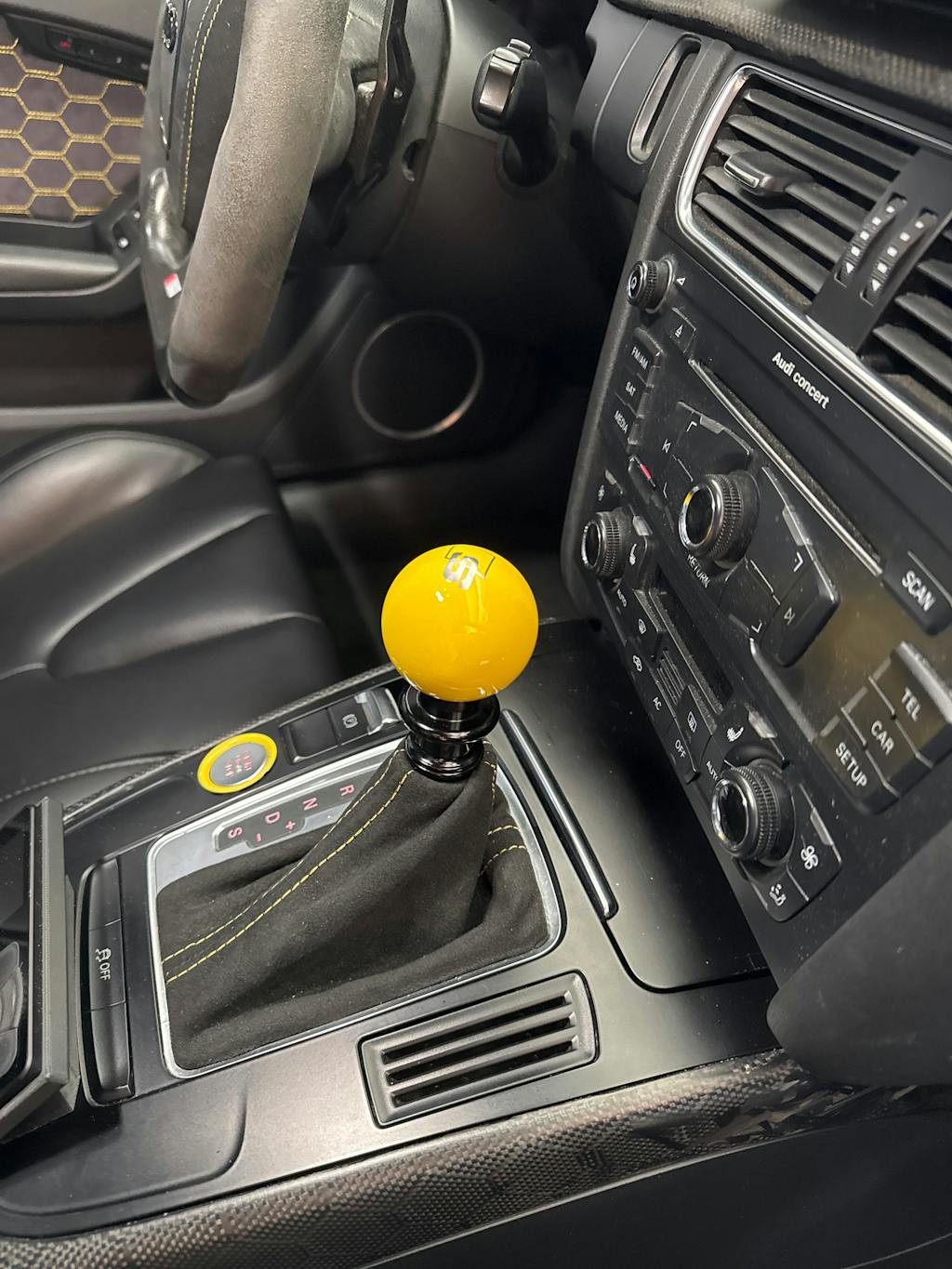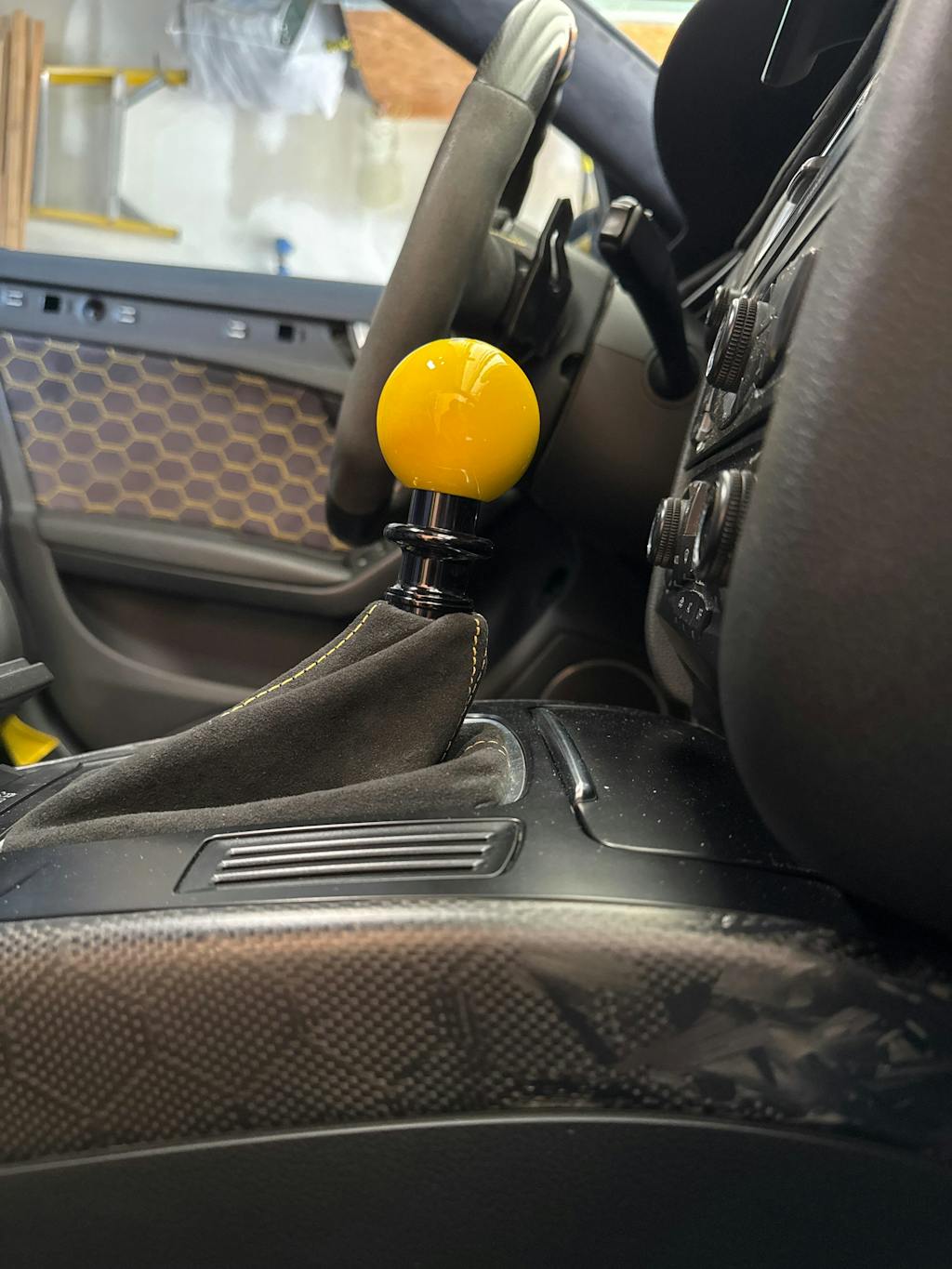 Had the threads been made longer (more akin to the short shifters) and jam nutted for height adjustment, rather than use the big aluminum block used as a coupler nut between the body and a setscrew, shallower lockout recesses would work fine, other knobs would drop right on, and you'd actually gain a bunch of height adjustment along the way. The multi-piece mess lodged inside your knob wouldn't have a chance of happening either.