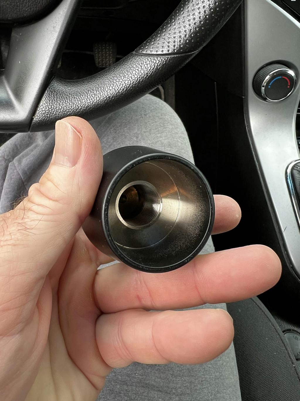 Timothy Slovak Stock shifter knob was worn. Surprised to find a knurled post instead of threaded. Wtf. My amazon $10 replacement was useless. Thought I’d be replacing whole shifter assembly now. Put some tape on old one and sulked for week or two. Removing old one was a bit of a process as it just kept spinning, took out my dewalt oscillating tool and gently cut through shifter knob ONLY, although I did nick the shaft a smidge. I had Chevy years ago replace knob , but they probably did entirely assembly can’t remember. I came across Billetworkz and my life changed forever! Spent the $100 on knob pricey yes, but now it was about winning and losing. This thing came faster than a Jimmy John’s! I thought they put rocks in box as it was oddly heavy. This knob was precious, beautiful, and even better? The ADAPTOR you’ll need for knurled post. This thing is bad ass and I’d cut a perfectly good shifter knob just to have this one! Feel like driving a new car for $100!