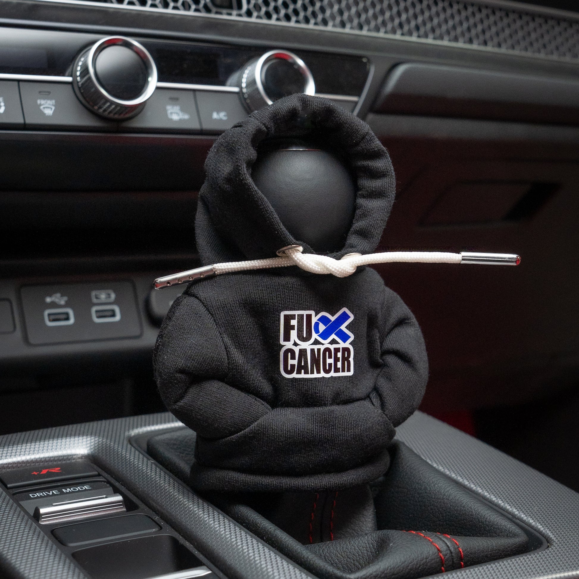 - Slide the Shift Knob Hoodie over your shift knob until it fits snugly.